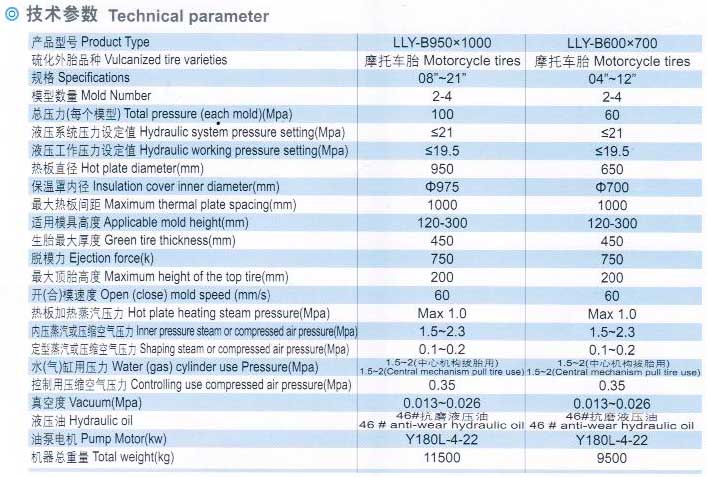 該硫化機是一種液壓傳動和鎖模的雙模外胎自動定型硫化機, 主要用于輪胎工廠硫化各種摩托車輪胎、扁平車輪胎、部分規格沙灘車輪胎及工業用輪胎的硫化。
